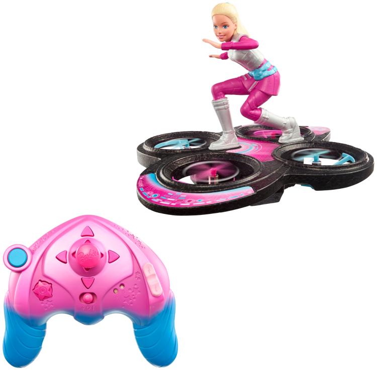 Enjoy your own galactic adventure with Barbie’s real, flying remote controlled hoverboard! With four propellers, you can control the out of this world adventure and complete amazing stunts including a 360-degree spin. Help Barbie soar!