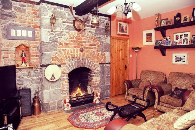 The house boasts seven bedrooms, all en-suite, two sitting rooms, including the one pictured above, fitted with a cosy open fire, one large dining room and a fully fitted kitchen.