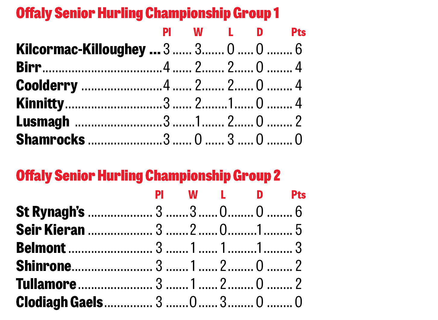 The Offaly Senior Hurling Championship tables and fixtures ahead of a crucial weekend