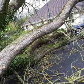 This car in Maryborough Village in Portlaoise was completely smashed when a tree was blown on top of it during the high winds in the afternoon.