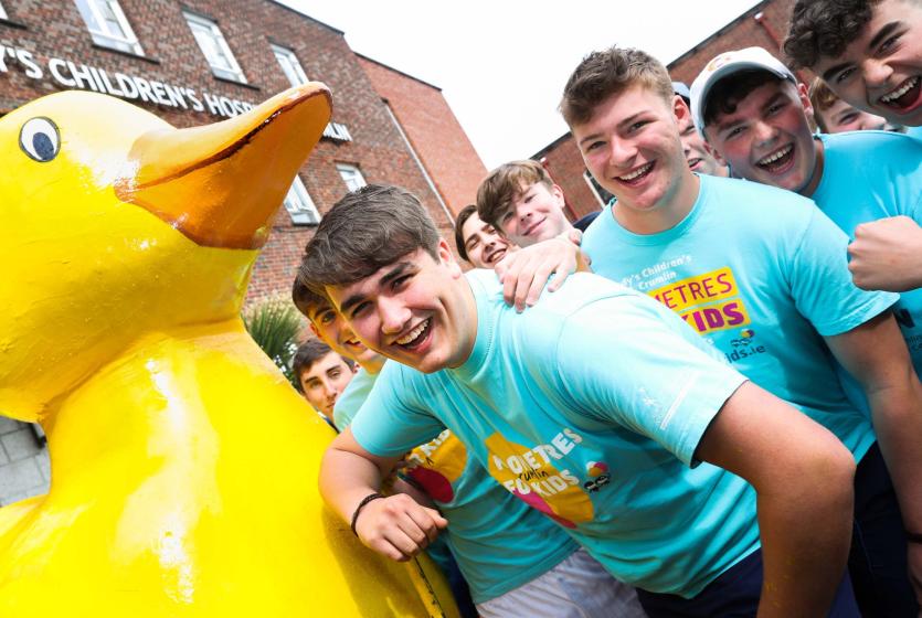 While many of their schoolmates continue their Junior and Leaving Certificate exams, 31 students from Clongowes Wood College in Clane, Co.Kildare, are pushing a three-metre high duck across the country to raise money for Our Lady’s Children’s Hospital in Crumlin. They commenced their nine-day trek yesterday, Wednesday, June 7.