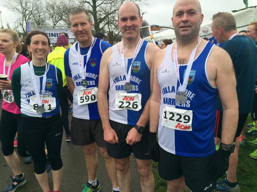 Now in its third year, the Mullingar Half Marathon on St Patrick’s Day is gaining in popularity with close to 1300 participants taking part in the 13.1 mile race. There was a big contingent from Harriers involved with a squad of 47 completing the distance. The course was favourable but weather conditions on the day deteriorated as the race progressed with many getting caught in heavy rain as they finished. Raymond Ryan posted the fastest time of that group, running 1.19.04 to finish 22nd overall. Sinead Rigney was fastest of the Harriers ladies with a great time of 1.33.03. Well done to all who ran, particularly those who earned their first Half Marathon finishers medal.