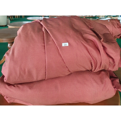 A supersized pair of burgundy and gold stripped Curtains
