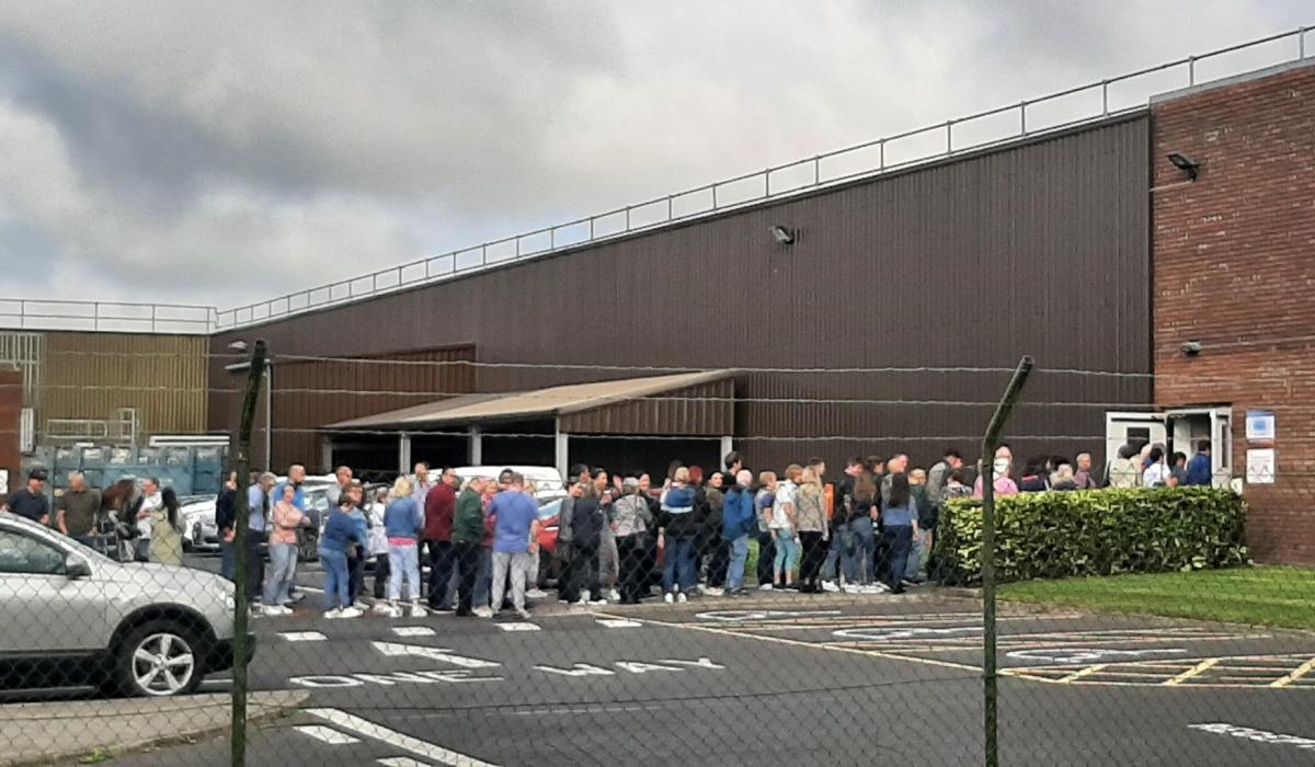 Cardinal Health employees outside the plant last August as details emerged that it planned to cease operations in Tullamore
