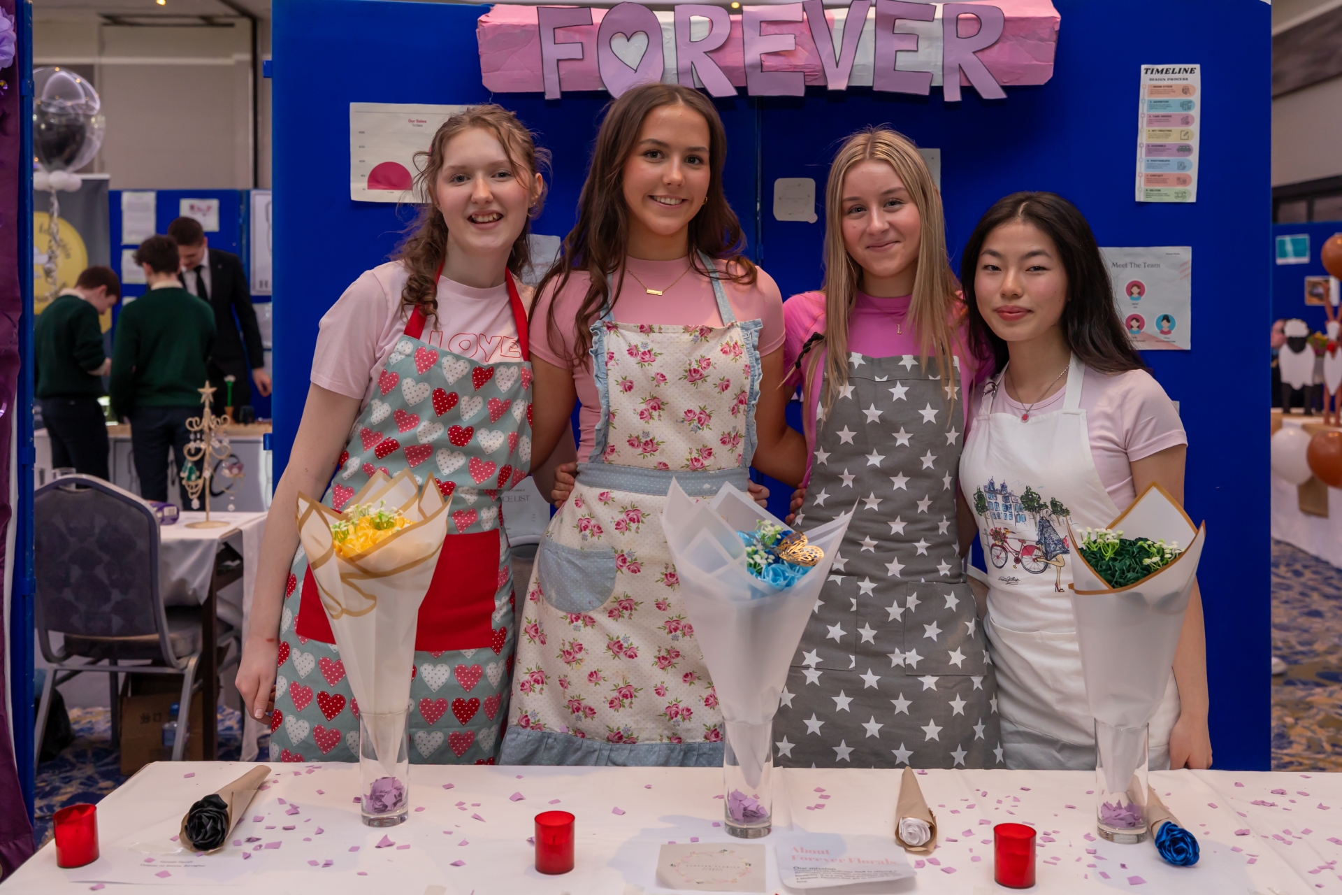 Forever Florals from left to right Rachel Kenny, Aoife Moylan, Leah Power, Tiffany Chen Banagher College pictured at their stand at the Student Enterprise County Final
