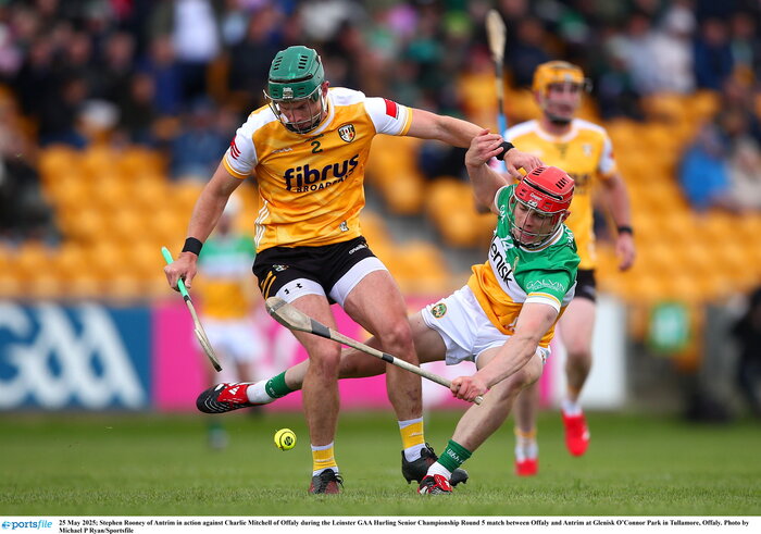 Offaly lived on their nerves but eventually secured a 3-15 to 1-16 win over Antrim in Glenisk O'Connor Park to secure their place in the Leinster Championship in 2026. A late goal from Killian Sampson eventually settled a game played in a strong wind in Tullamore. PICTURES: Sportsfile