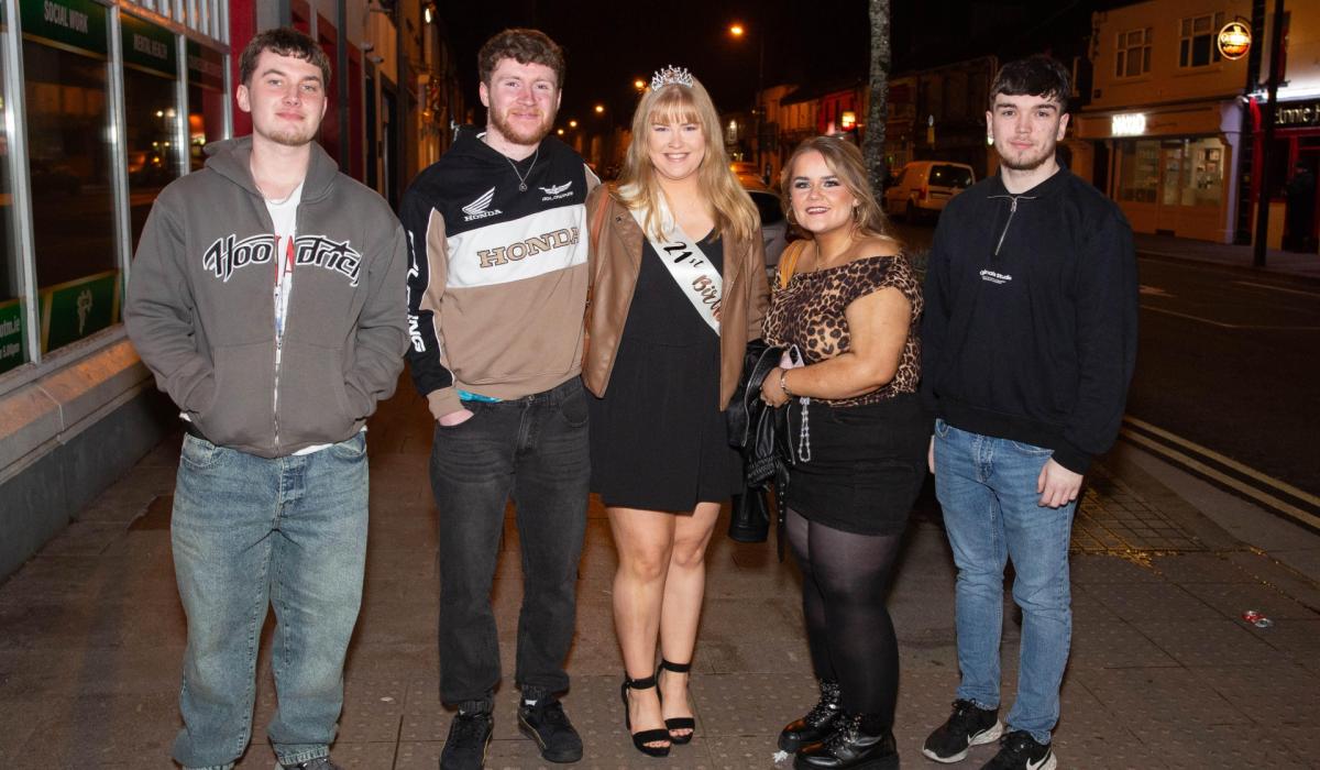 Sophie Kelly is pictured here out on the town with friends celebrating her 21st birthday in the Offaly county town on Saturday night.