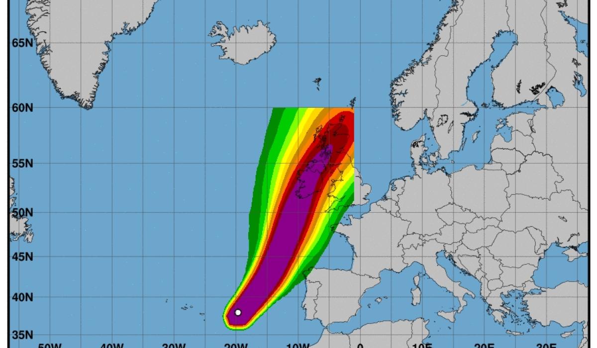 The data from the National Hurricane Centre in America is predicting that the storm will be felt hardest on the west coast although Offaly will also be close to the predicted path of the eye of the storm.