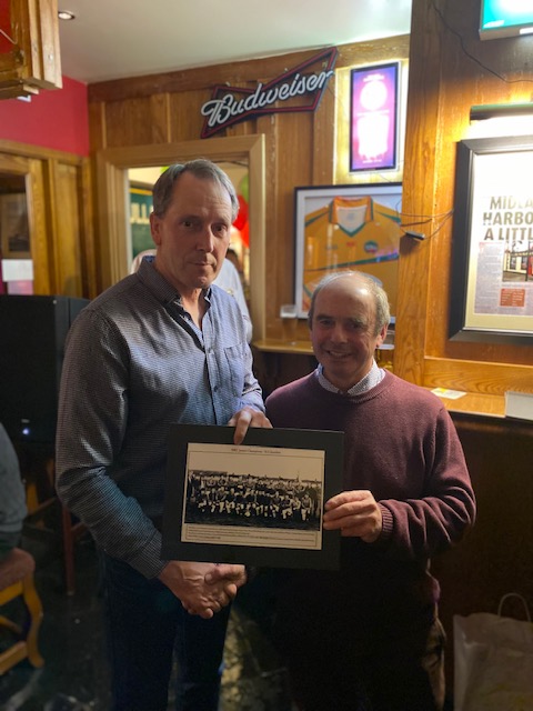 Pictured at the reunion of the St Columba's team that won the 1982 JFC were Durrow GAA chairman Tom McDermott (right) and Kevin Ward.