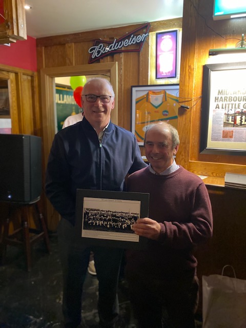 Pictured at the reunion of the St Columba's team that won the 1982 JFC were Durrow GAA chairman Tom McDermott (right) and PJ Lynam.