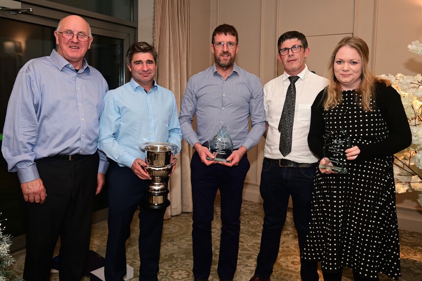 Winners in the Premier section of the herds competition were L-R Cormac Guinan (Agrineeds Birr, Sponsor), Kevin Flynn, Tadhg Sweeney, Denis Donohoe and Anne-Marie Ging.