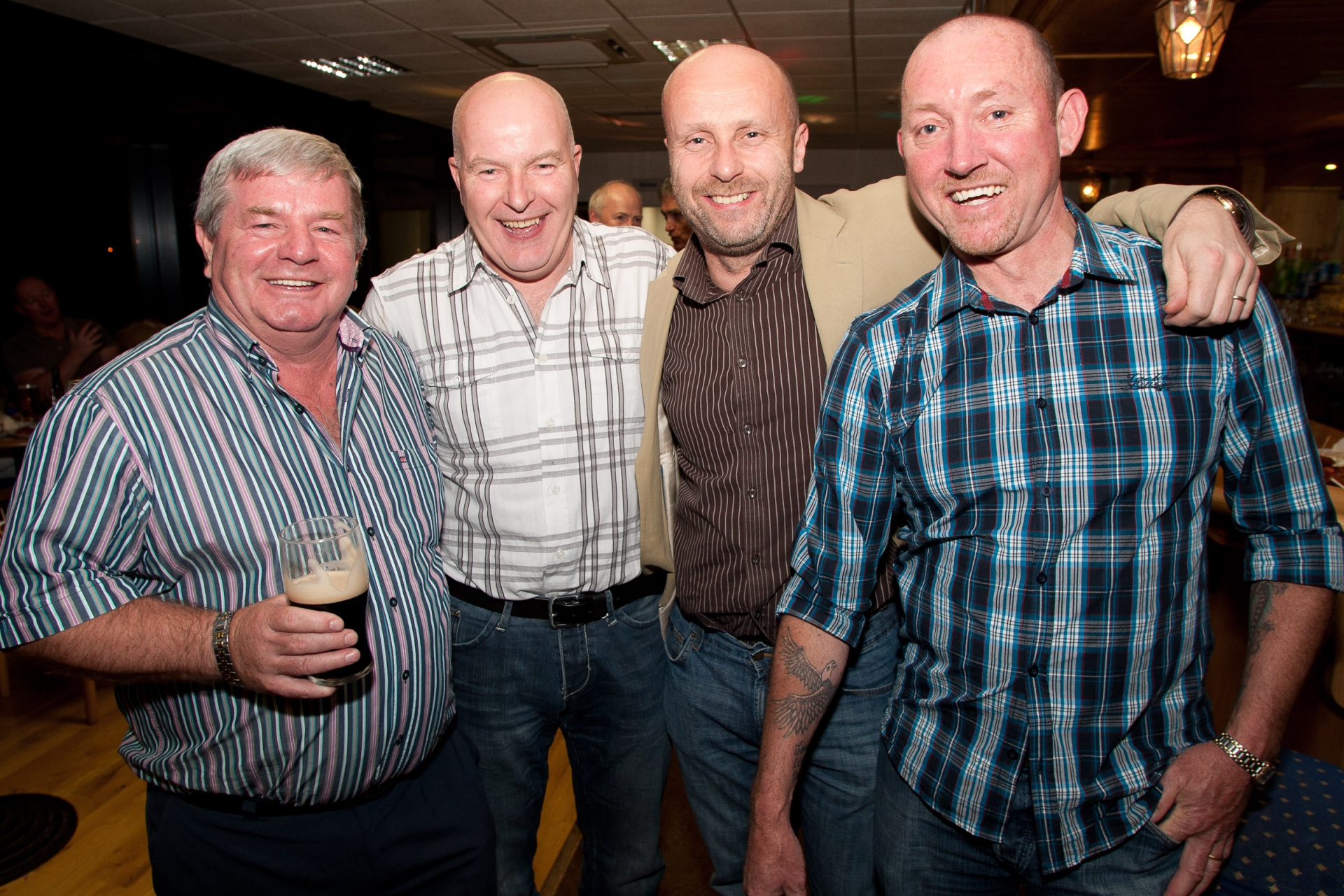Din Joe Connolly, Pat Colgan, Fra Mullen and Seamus Hogan celebrating the Tullamore Soccer Club 25 year reunion of winning the Blackthorn Cup and the Whitney Trophy at Leah Victoria Park, Tullamore. Picture: Ger Rogers/HR Photo.