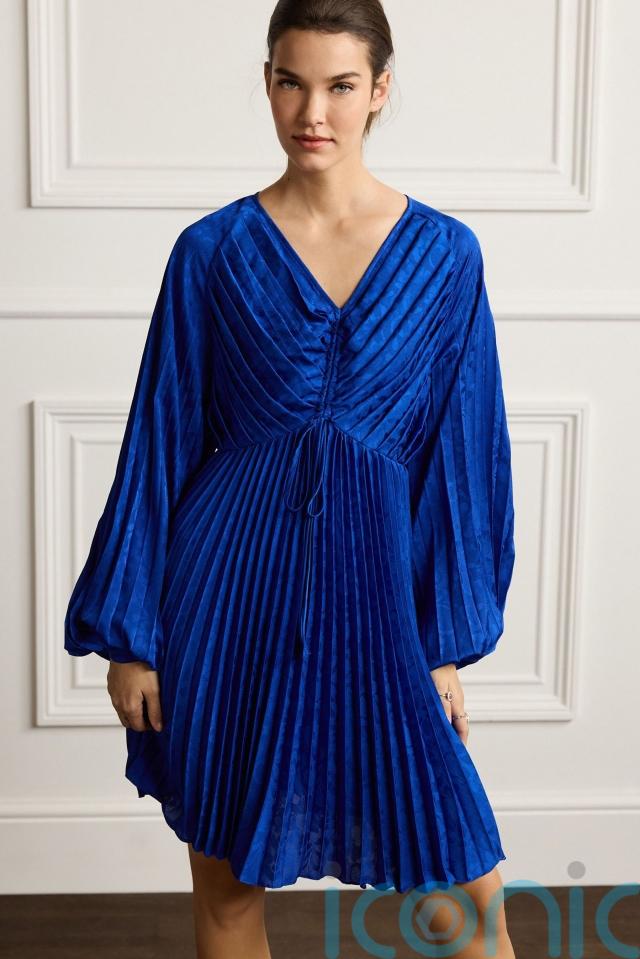 Next Blue Pleated Occasion Long Line Sleeve Mini Dress, £85