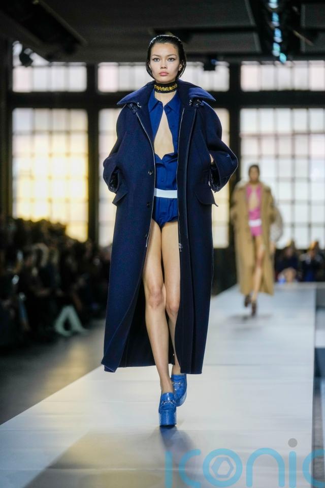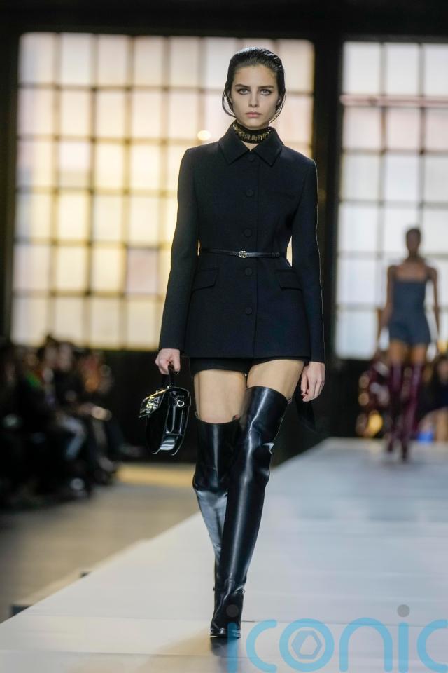 The opening look of the autumn/winter 2024 collection gave a sneak peek of what was to come, with a model wearing an all-black outfit of a beautifully tailored belted jacket, short shorts and thigh-high boots.