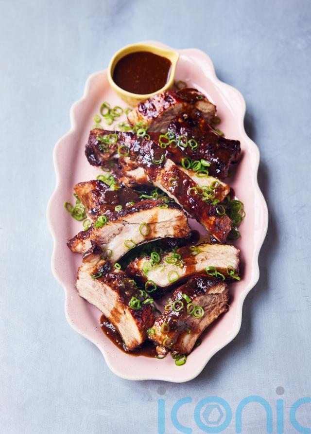 4. Slice up the ribs, then trim, finely slice and scatter over the spring onions. Pour the remaining sauce into a bowl, for dunking. Great served with sticky rice and zingy seasonal greens.