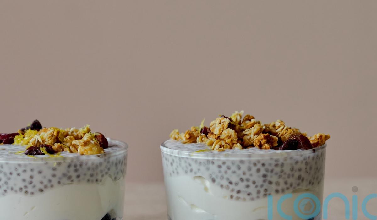 3. Once the thickened chia mixture is ready, spoon it evenly over your pots of yoghurt. When you’re ready to serve, sprinkle with granola and lemon zest.