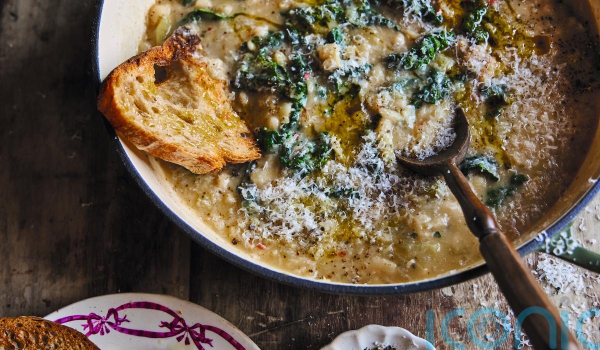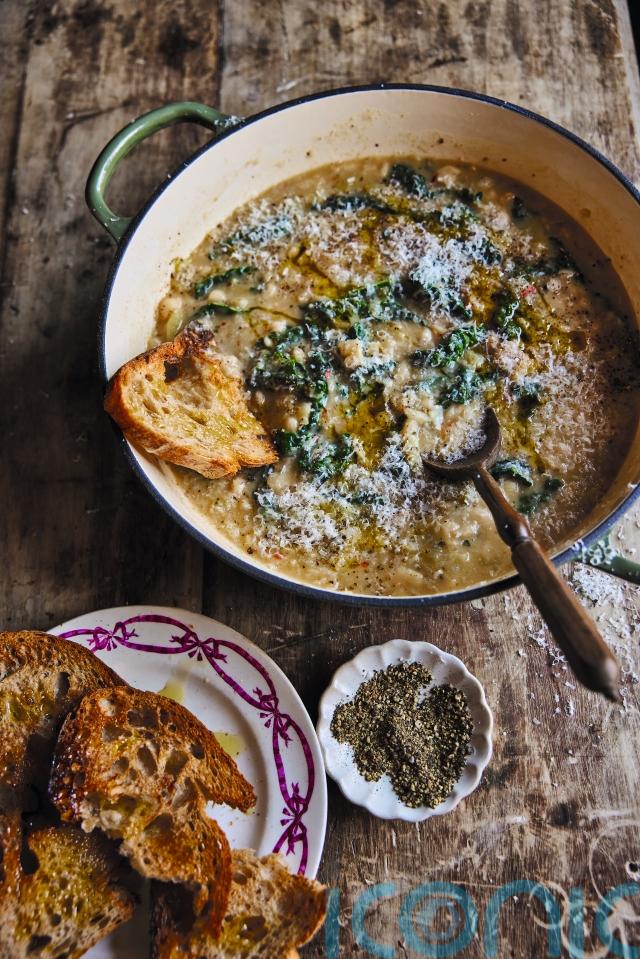 5. Divide between warmed shallow bowls and top with more Parmesan cheese and a drizzle of olive oil. Serve with toasted sourdough bread.