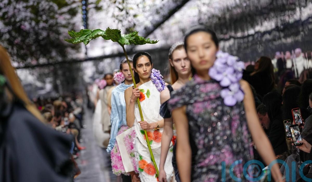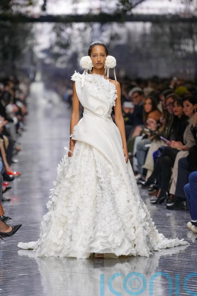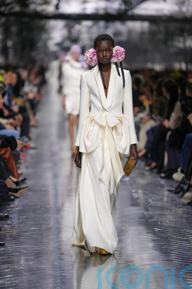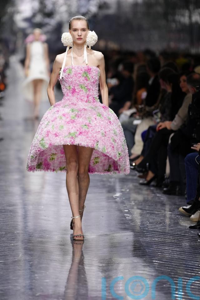 Anderson honoured that lineage while turning it on it’s head. His blooms were not decorative but structural: built into silhouettes, erupting from seams, hovering around the body like living things. Hydrangea earrings brushed shoulders and bustles fanned out like peacock tails. Dior once again was, as it always should be, “pretty”.