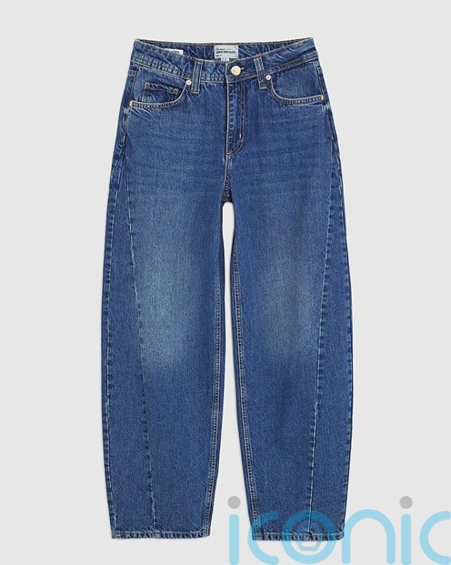 River Island Blue Mid Rise Seamed Barrel Leg Jeans, £46