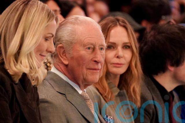 During the show the king was sat next to fashion designer Stella McCartney and CEO of the British Fashion Council Laura Weir.