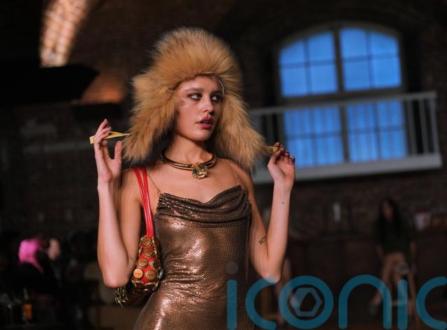 Exposed zips, studs and hardware buckles cut through more romantic elements, while fishnet panels and second-skin layers added a utilitarian edge. Fringe and furry trims – recurring trends across the London schedule – injected texture and movement under the low lighting.