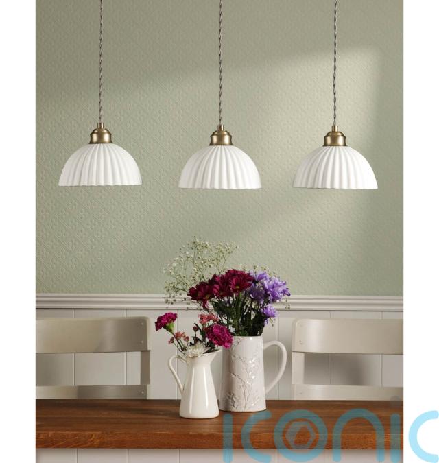4. Laura Ashley Durford 3 Light Bar Pendant Matt Antique Brass And White Ceramic, £150, Där Lighting