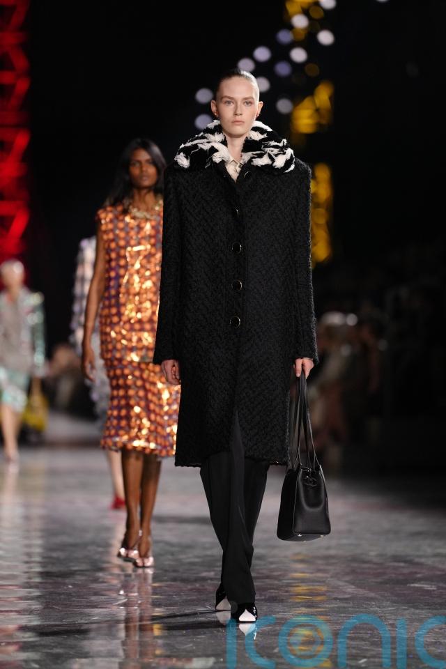 Elsewhere, a fitted black jacket and skirt combination emphasised a streamlined silhouette, styled with a shoulder bag and two-tone heels – a subtle nod to one of Chanel’s most enduring footwear signatures.