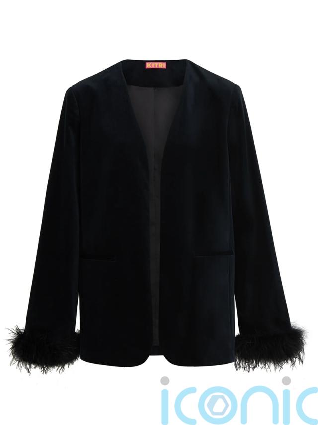 Kitri Marlene Black Velvet Feather Blazer, £147 (was £245)