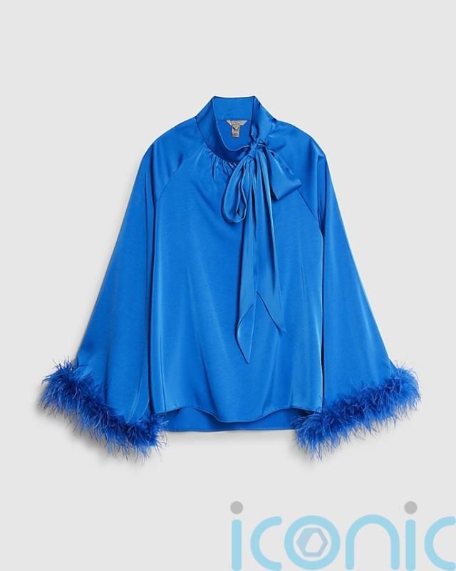 River Island Blue Satin Long Sleeve Feather Blouse, £26 (was £49)