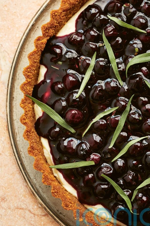 “When I need a simple crowd-pleasing dessert, a no-bake cheesecake fits the bill perfectly,” says Kimber. “This white chocolate version uses Biscoff biscuits for a toasty, almost caramelised, flavour in the crust and it is topped with a blueberry compote infused with a little tarragon for a beautiful herbal aniseed flavour.”