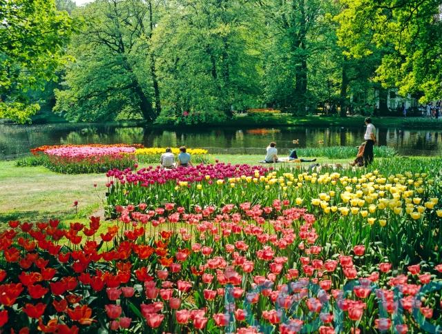 “Located in the town of Lisse, about 30 to 40 minutes outside of Amsterdam, the Keukenhof Gardens features more than seven million hand-planted flower bulbs each year.