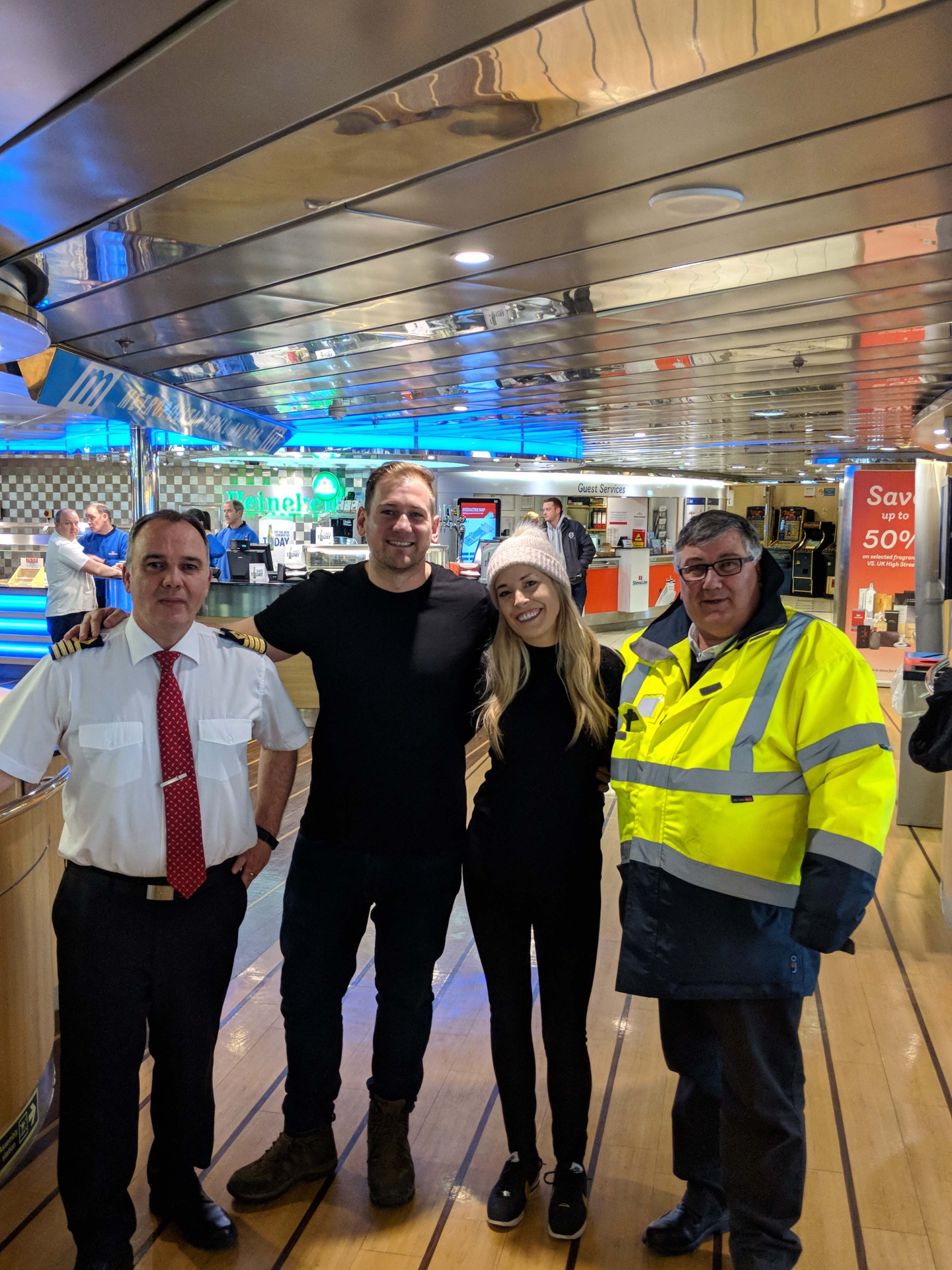 PICTURED: The bride and groom with Stena Line staff after they saved the day