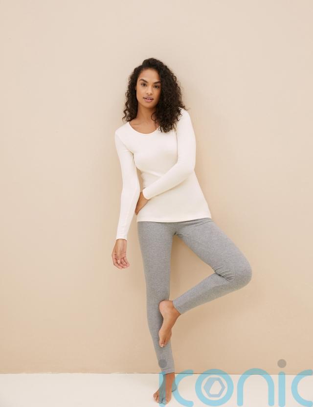 M&S Collection Heatgen Plus Thermal Long Sleeve Top in Light Cream, £16; Collection Heatgen Plus Fleece Thermal Leggings in Grey Mix, £16