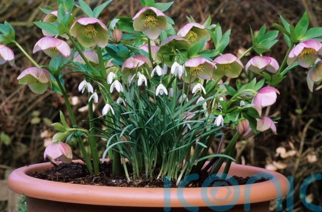 If you have a small garden, pollinating insects will head hungrily to your nectar-rich container plants in late winter and early spring. The nodding heads of hellebores, which appear at that time, not only provide a subtle hue to any arrangement, but are also a good food source for emerging queen bumblebees.