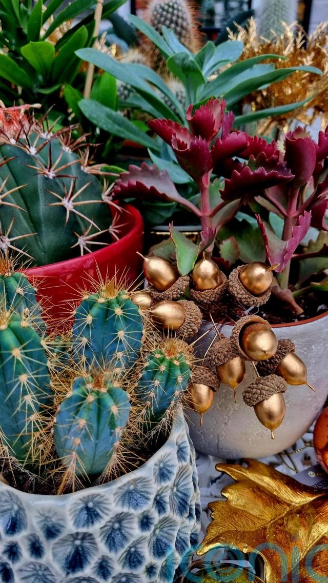 Murray favours a nature theme, incorporating pine cones, acorns and velvet-style mushrooms. Incorporate red, gold and silver plant pots which will instantly add a Christmas vibe to your houseplant collection, she adds.