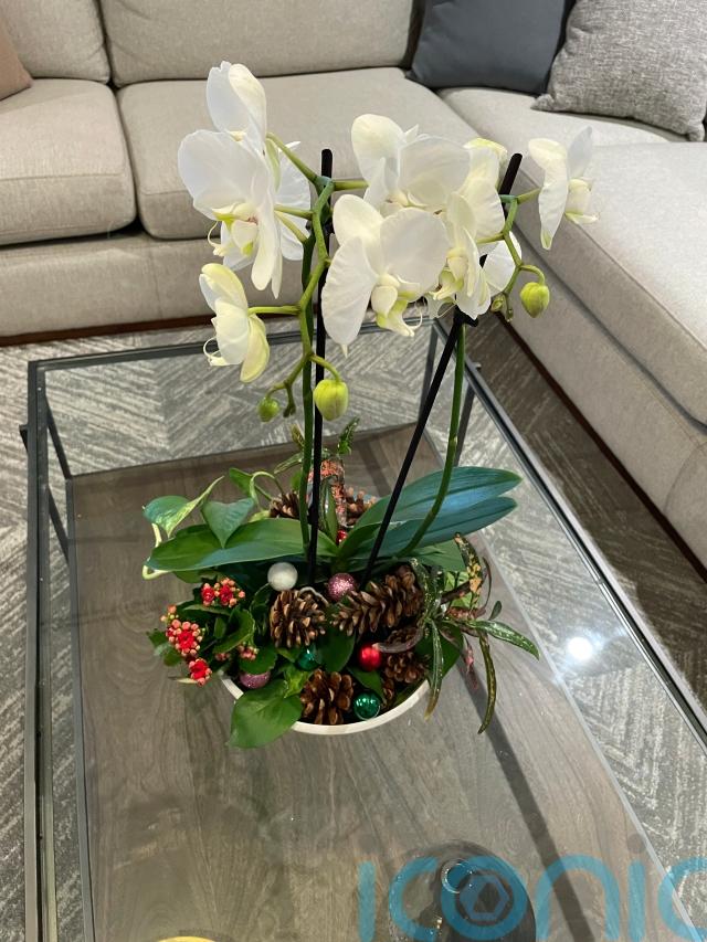 Ellen Mary suggests: “One large white flowering phalaenopsis orchid stood in the centre of a clear glass bowl filled with pinecones and baubles is a festive treat and easy to create.”