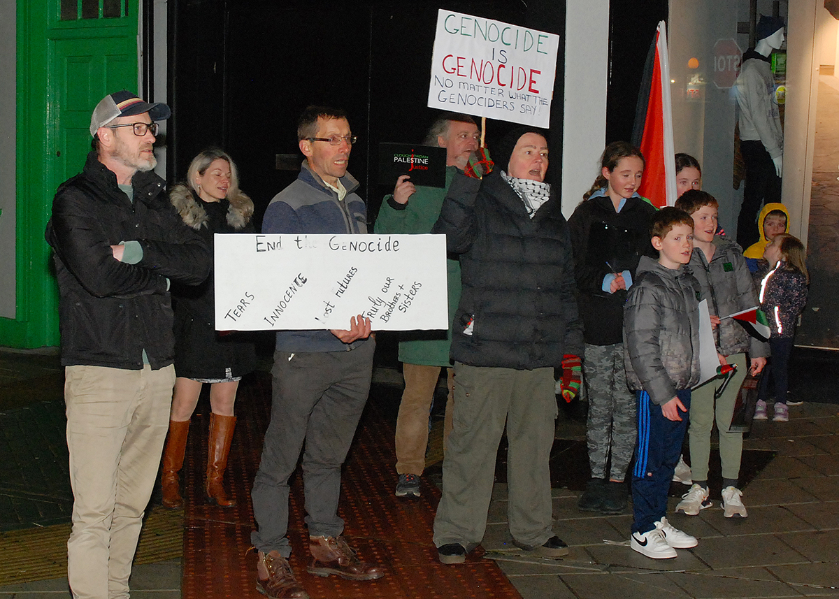 Pictured above are the group who attended the Solidarity with Gaza event at Market Square in Roscrea on Wednesday last. Photo: PJ Wright