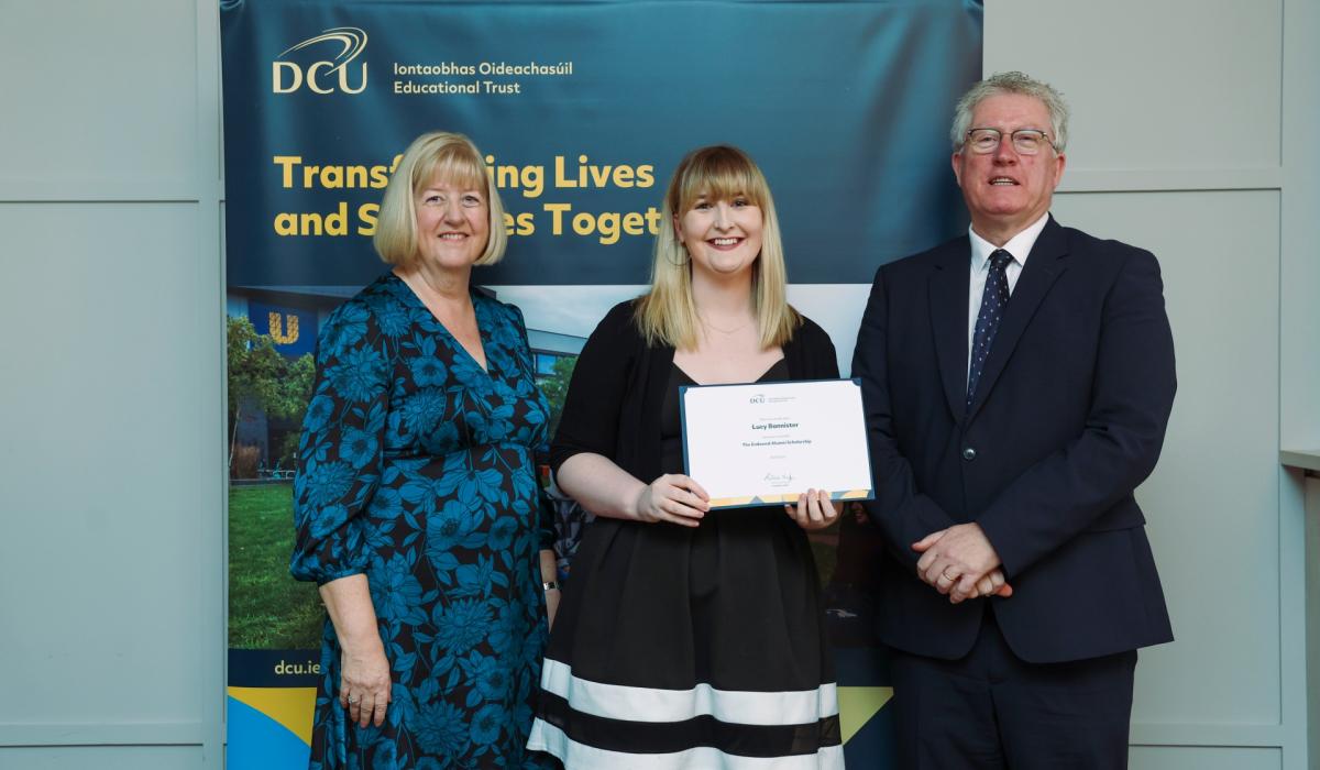 OFFALY student Lucy Bannister was presented with a scholarship award by Dublin City University at a ceremony to celebrate memorial and endowed scholarships on Wednesday, November 6. In total, 51 students received awards named in honour of individuals and organisations who have played a leading role in the life of Dublin City University and in wider Irish society.