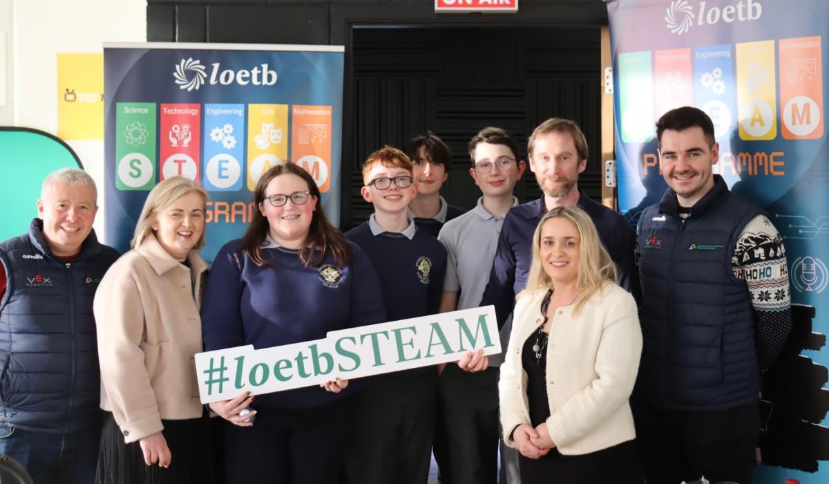 Ray Bell, Offaly County Council, Linda Tynan, LOETB, Banagher College students Freya Maher, Darragh Egan, Tim Lally and Alex Sullivan, Terence O'Brien, LOETB, Carol Nolan TD, Dean Hodge, Co Council