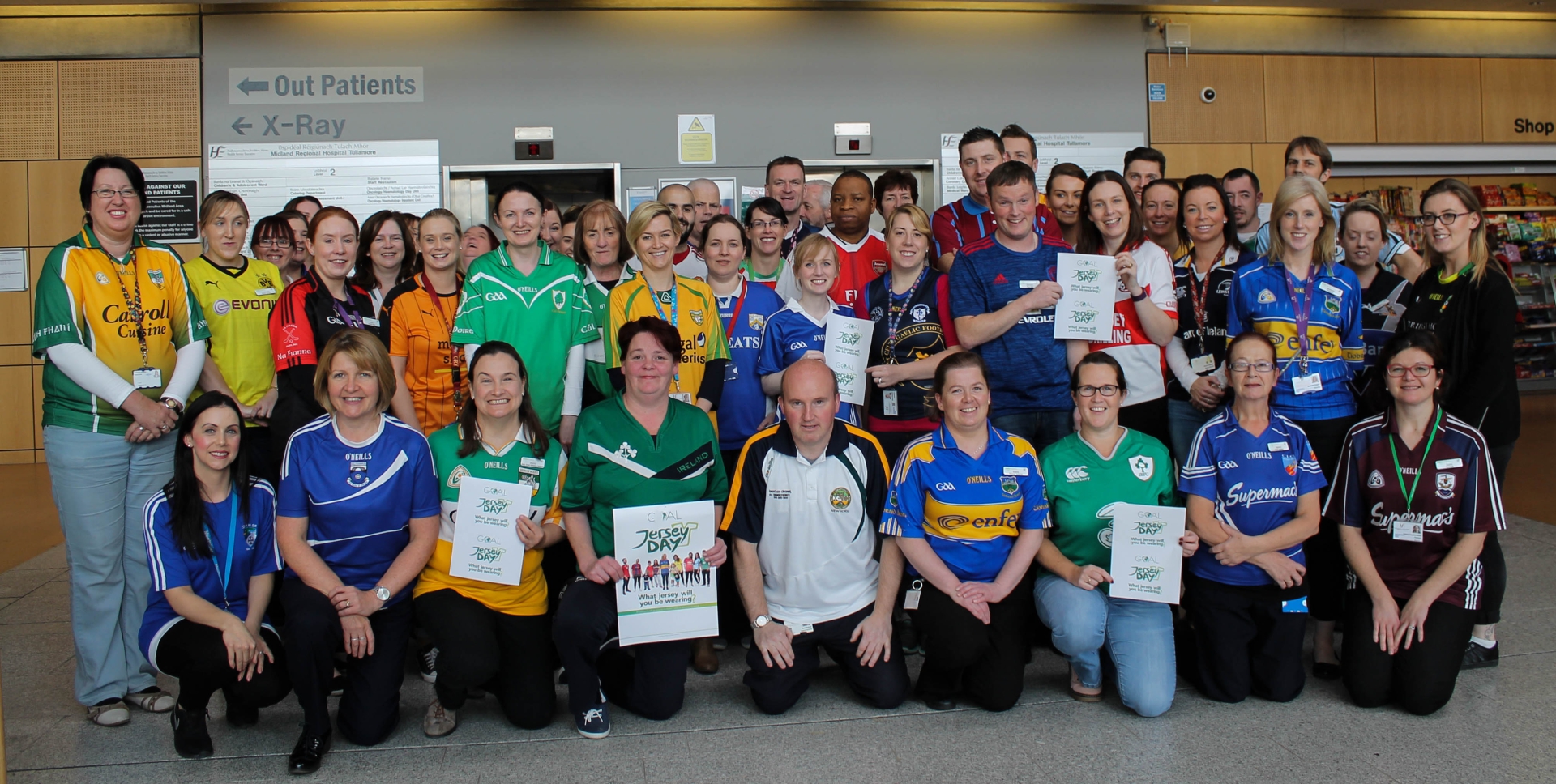 On Friday, October 14, staff at Midlands Regional Hospital Tullamore showed their support for the lifesaving work which Goal undertake by wearing their favorite jerseys to work.