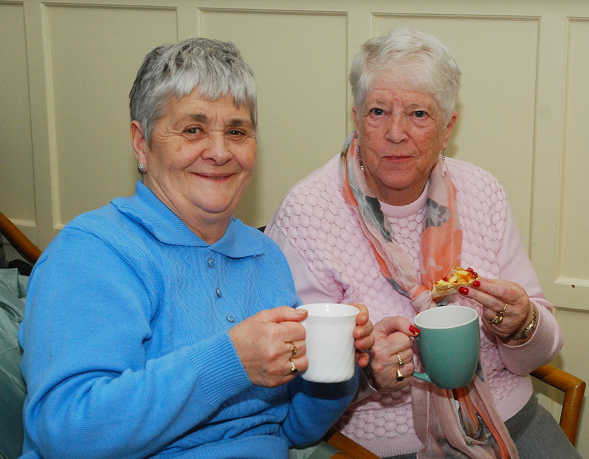 Pictured below are ukulele player Mary Curtin Delaney and singer Jim Kennedy and above enjoying tea for two are Marie Ryan and Mary Ryan. Photos: PJ Wright