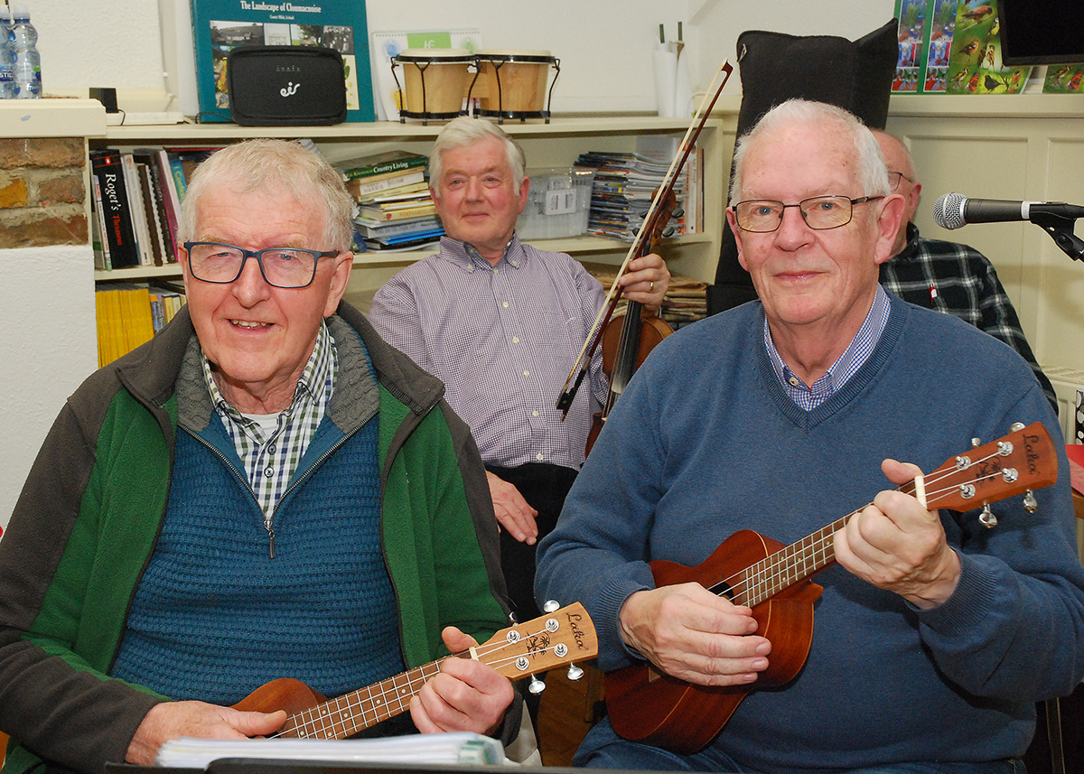 Pictured above are ukulele players George McManus and Dick Conroy and Pat Flanagan in the background and below are trio Mary Carroll, Anne Fogarty and Pauline Quinlan. Photo: PJ Wright