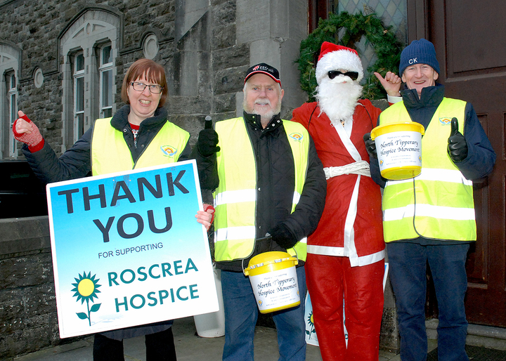 Members of Roscrea Hospice seen here with Santa - Clare Walsh, Ramsey Nolan, Santa and Diarmuid Fitzgerald. Photo: PJ Wright