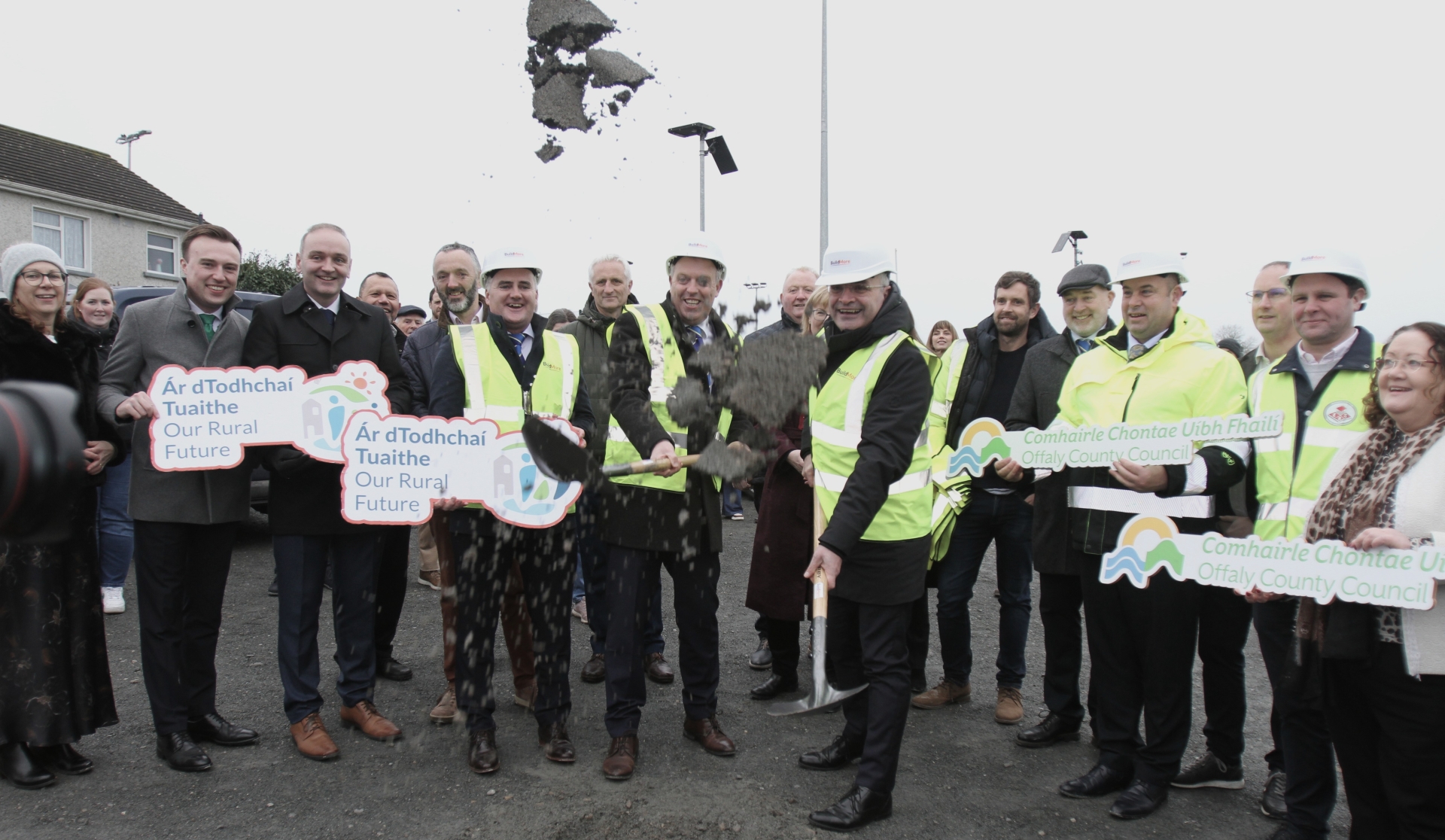 The sod turning ceremony was attended by local clergy, schoolchildren from Moneygall and elected representatives from Offaly and Tipperary County Councils.