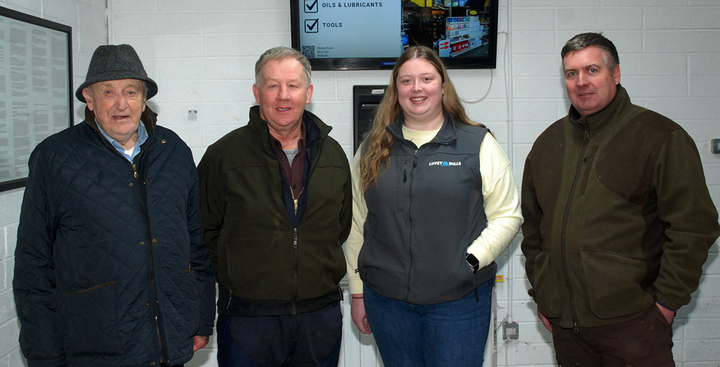 Sponsors Liffey Mills and winners - Jimmy Stanley (Champion), Tom Fitzgerald (Class 2 Pair Heifers), Rachel Donoghue (Liffey Mills) and Chairman Ken Grant. Photo: PJ Wright