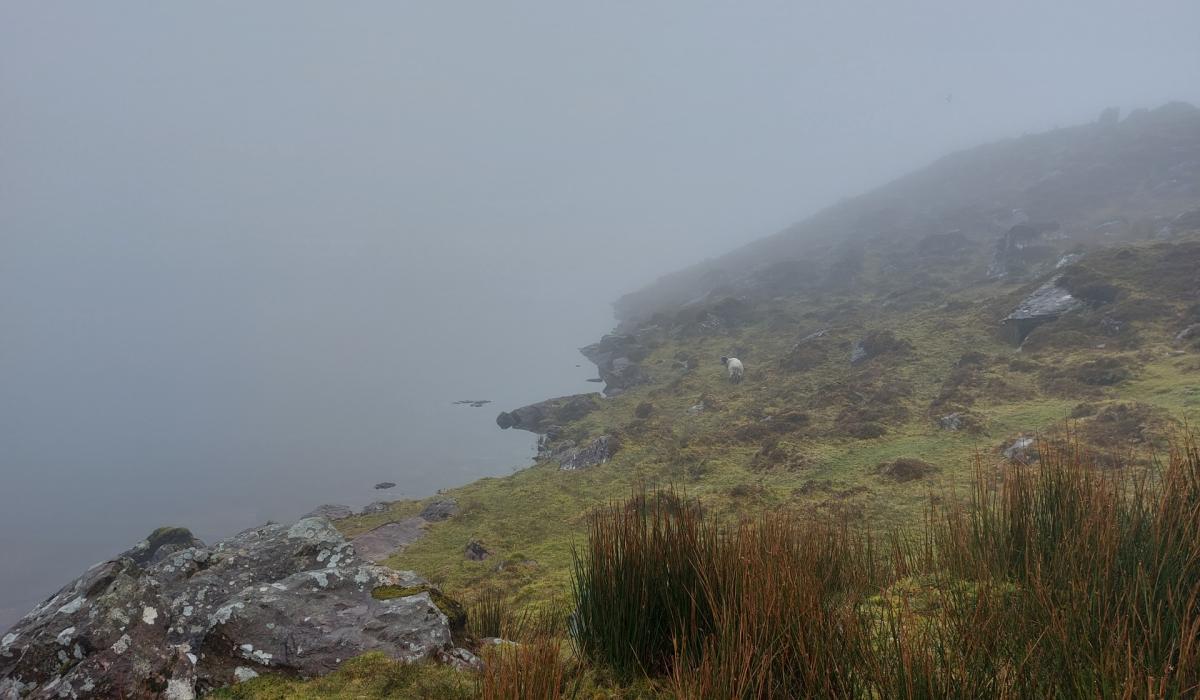 Lough Muskry on Saturday afternoon submerged in lowlying cloud. This corrie lake is positioned at 493 metres above sea level.