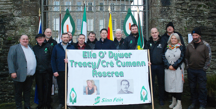 Pictured above are oganisers of the commemoration with members of the Ella O'Dwyer/Treacy Cré Cumann and Cathaoirleach of Roscrea Sinn Féin, Michael Donovan, Matt Carthy, Seanadóir Maria McCormack and Clls David Dunne and Sean Maher
