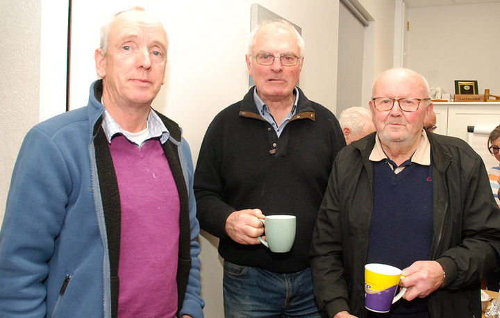 Diarmuid Fogarty, Brendan Lalor and Michael Kiely enjoying a cuppa at the Rambling House. Photo: PJ Wright