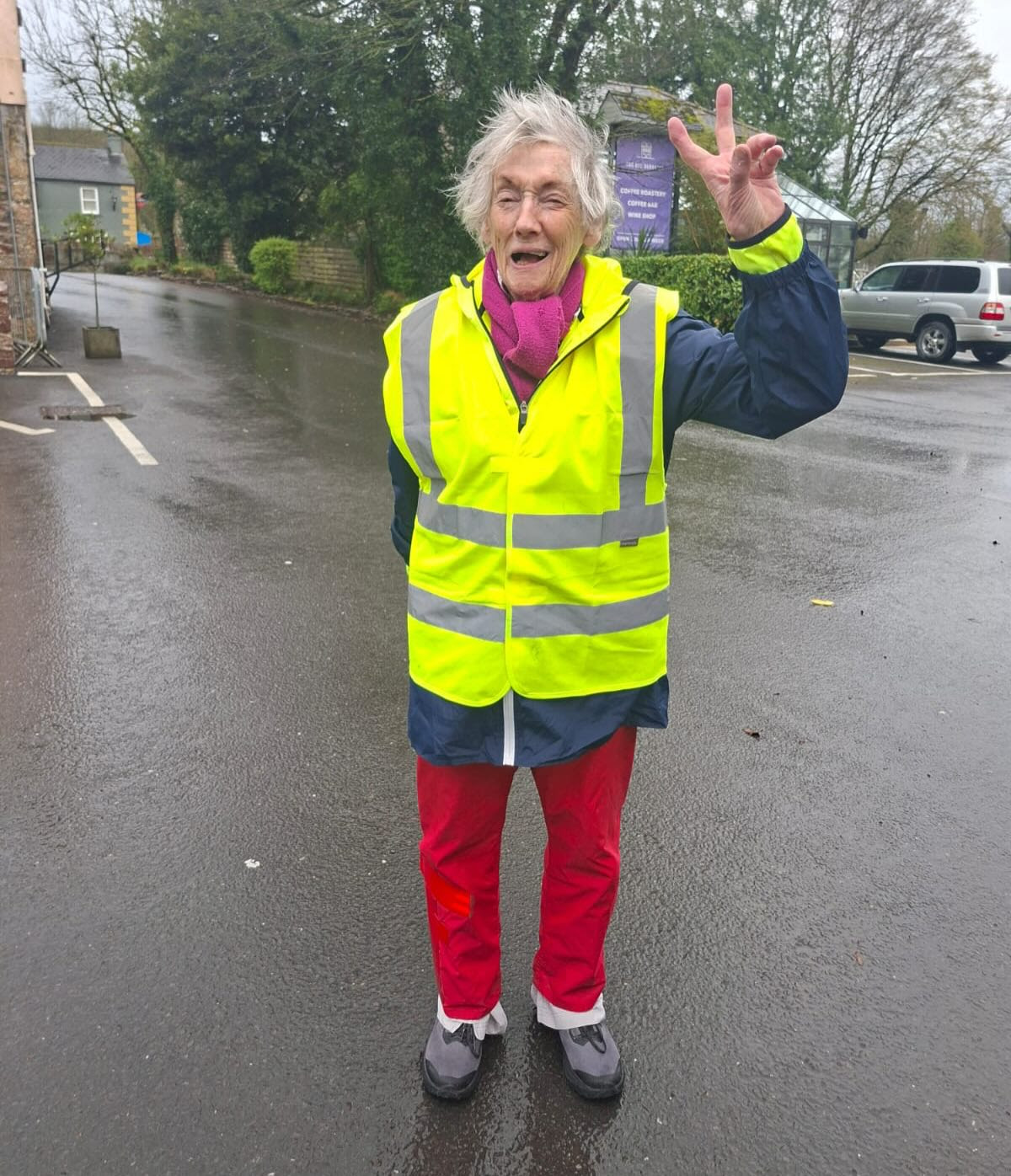 Supported by a crew, is continuing her cross country walk from Roscrea to Mountrath.
