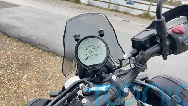 I have been struggling with a few ‘false neutrals’ from the bike, though, and the gearbox itself feels like one area of the Himmy experience which isn’t the most upmarket yet. However, in all other areas, the bike feels spot-on; the main display is clear and easy to read, while the upright screen does give you a decent amount of wind protection, which should help when I take the Enfield further afield. That added storage space from the tank bags is really helpful, too.
